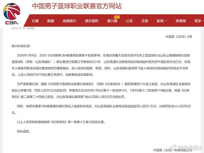深夜11点,CBA公司给山东队主教练邱彪,正式开出了一份大罚单!显然,这就是一个冲动的惩罚!